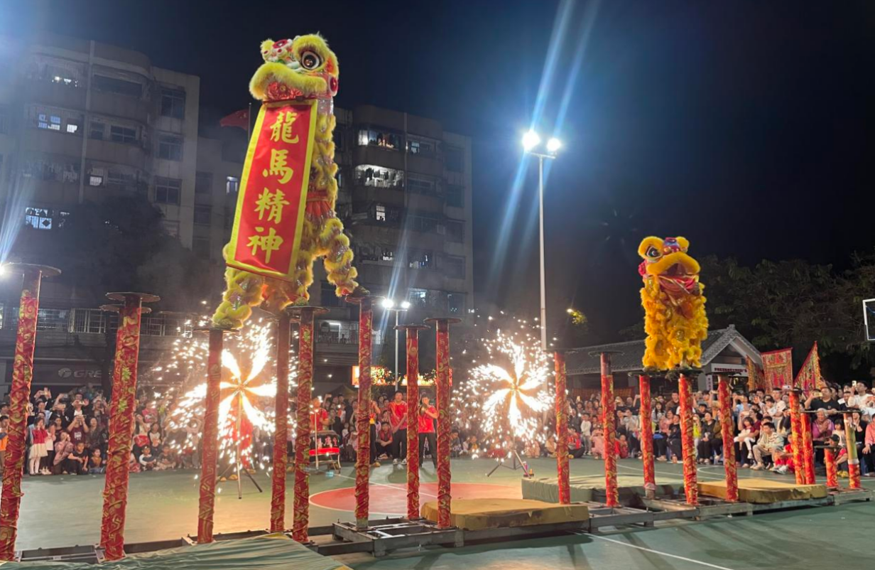 “小技术爸妈牵着我来,当今我带着两个孩子来。年年都盼着这一天,就像赴一场老一又友的约。”荔红社区街坊钟先生笑着竖起大拇指,“为萝岗街点个大大的赞!” 龙狮共舞,锣饱读震天王人贺新岁 当晚,压轴大戏龙狮汇演在萝岗街文化广场燃情演出。金龙翻滚、醒狮腾踊,或抬头阔步,或俯首探路,或飞身上桩,一颦一笑惟妙惟肖。红狮在2至4米高的梅花桩上迤逦腾挪,时而在桩头歪头“卖萌”,时而伏桩“打盹”,忽又纵身矗立阵容倾盆,逗得不雅众席上笑声、掌声、喝彩声纷至沓来。