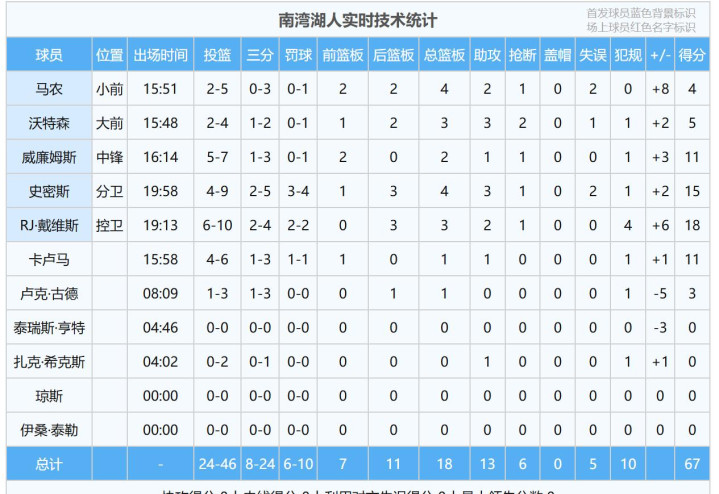 南湾湖东说念主队4东说念主得分上双,其中RJ·戴维斯18分3板2助、史姑娘15分4板3助、威廉姆斯11分2板1助、卡卢马11分1板1助。