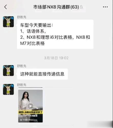 据了解,东风日产NX8上市后,网罗上出现广泛模板化、作风颐养的对比本色,聚首将日产NX8与理思i6进行单方面拉踩,连挑剔区留言齐高度叠加,明显是有组织的水军操作。 理思汽车反映赶快,首创东说念主李思在4月11日通过一又友圈两次发声,公开批量帖文、里面文献等凭证,其中包含东风日产阛阓部使命群截图,清楚有高管条目制作“NX8与理思i6对比表格”,条目径直传递定向信息。