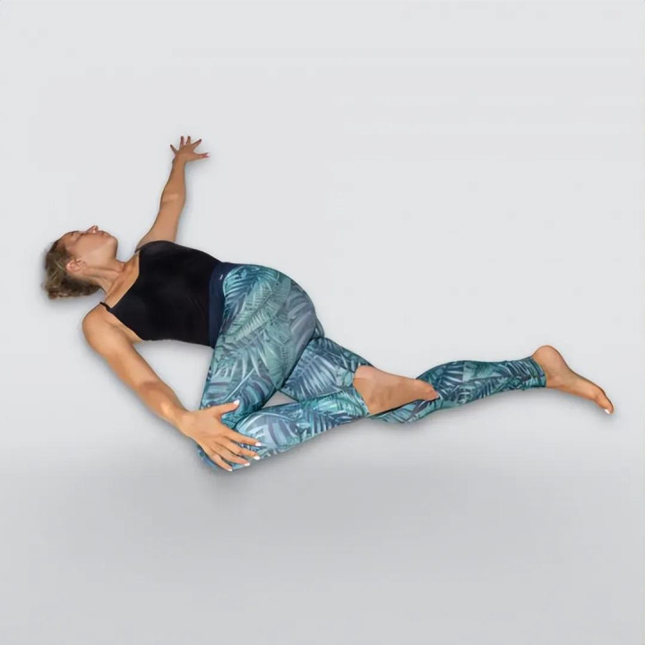 加多脊柱的生动性,拉伸肋间肌肉。给腹部器官特别是肝脏和肾脏推拿。缓解背部和臀部痛楚。怒放肩部和髋部,拉长脊柱。 伏卧脊柱扭转