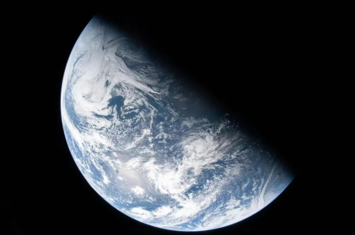 除了这张从舷窗拍的相片,飞船外部的录像头也同步拍了一张地球的相片。这张相片和舷窗拍的永逝很大,地球并莫得竣工地泄表示来,惟有一部分能看到。 好多东谈主可能会猜忌是不是录像头出了问题,其实不是,中枢原因是地球有一面莫得被太阳光映照到,那一面是阴霾的,惟有面向太阳的那一面是亮的,是以我们只可看到亮的那一部分。