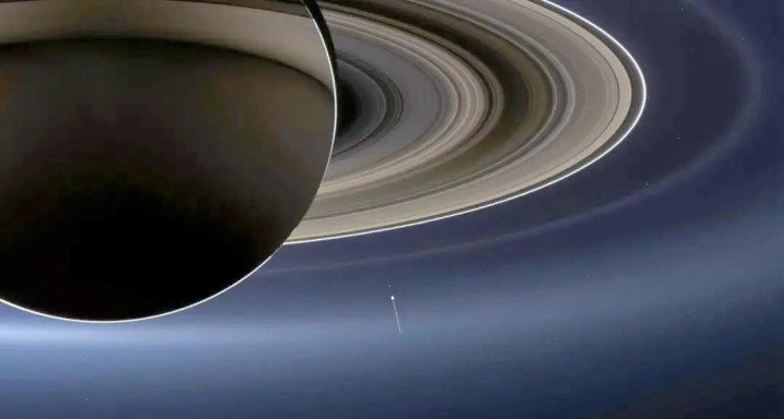 其中,在土星轨谈使命的卡西尼号探伤器,还有咫尺飞得最远的旅行者1号,皆拍过地球的画面,而这两个探伤器拍出来的地球,早就莫得任何细节了,只剩下一个小小的亮点。 我们先说说卡西尼号,在2013年7月19号,那时它正在土星轨谈上实践探伤任务,距离地球约莫14亿公里。