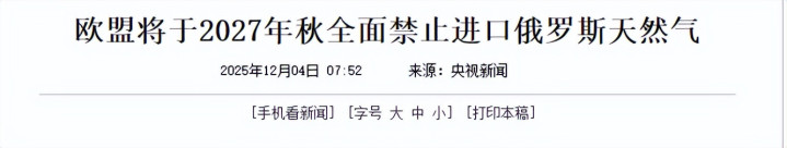 中国经济网:欧盟将于2027年秋全面拦阻入口俄罗斯自然气