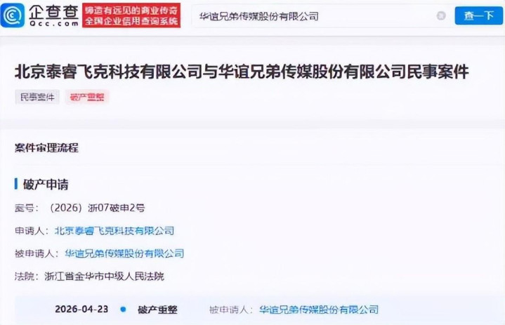 万达这边还好,至少名字改了,东说念主还在,另一头华谊兄弟的下场就惨了。 4月23日,有媒体发现华谊兄弟新增一则收歇案件。 案件类型为强制计帐案,执行梗概是华谊兄弟因1140.5155万的债务未结算,被某告白公司告上法庭,崇拜投入收歇审查模范。 这确认华谊兄弟如故走到了终末一步。